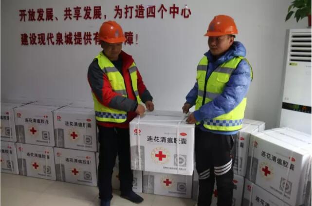 12月13日上午,濟南市政公用資產(chǎn)管理運營有限公司聯(lián)合山東省紅十字會、濟南市紅十字會、石家莊以嶺藥業(yè)集團,在工業(yè)北路快速路項目部為奮戰(zhàn)在各重點在建工程一線的農(nóng)民工捐贈了價值約11萬元的治療流感藥品“蓮花清瘟膠囊”。