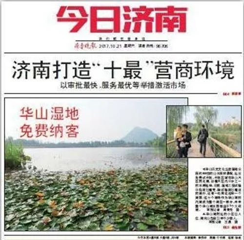濟南電視臺《都市新女報》:華山湖全部完成后,面積相當于五個大明湖。