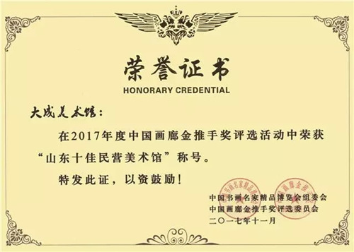 近日,在第六屆中國書畫市場健康發(fā)展論壇暨2017年度中國畫廊金推手獎頒獎盛典上,集團旗下的大成美術館(濟南城建集團直屬機構)應邀參加論壇并榮獲2017年度“山東十佳民營美術館”稱號。