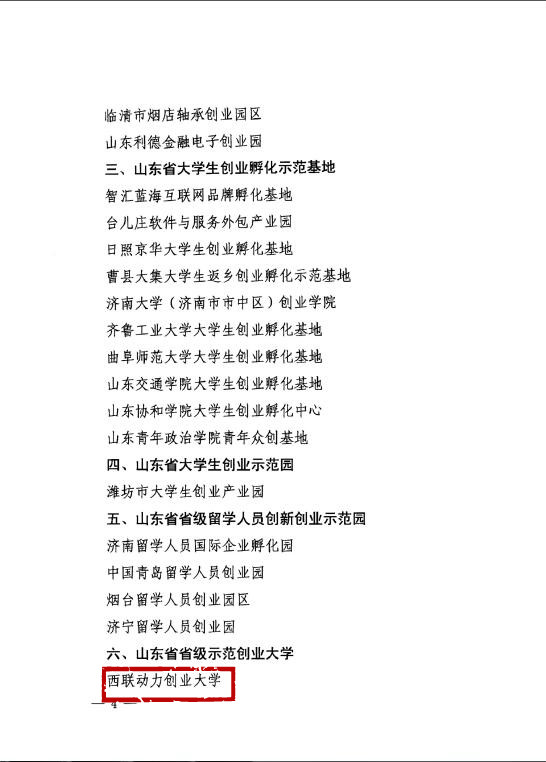 近日,省人社廳發(fā)布《山東省人力資源和社會保障廳關(guān)于公布2017年度省級創(chuàng)業(yè)示范平臺名單的通知》,明確全省評估認(rèn)定西聯(lián)動力等6家單位為省級示范創(chuàng)業(yè)大學(xué)。西聯(lián)動力是濟南市唯一獲此殊榮,也是全省唯一以企業(yè)命名的示范創(chuàng)業(yè)大學(xué)。