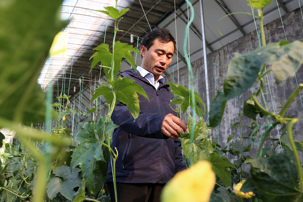 在絲瓜棚,陳德國(guó)邊檢查著絲瓜生長(zhǎng)情況邊解釋說(shuō)“這個(gè)棚的種植戶貪多,總想著一個(gè)藤上結(jié)好幾個(gè)瓜,但實(shí)際上果多不等于產(chǎn)量高,有時(shí)候一個(gè)藤上好幾個(gè)果反而營(yíng)養(yǎng)供不上了。”對(duì)于各類蔬菜種植,經(jīng)過(guò)18年的不斷實(shí)踐學(xué)習(xí),陳德國(guó)逐漸總結(jié)出了自己的一套“種植經(jīng)”。
