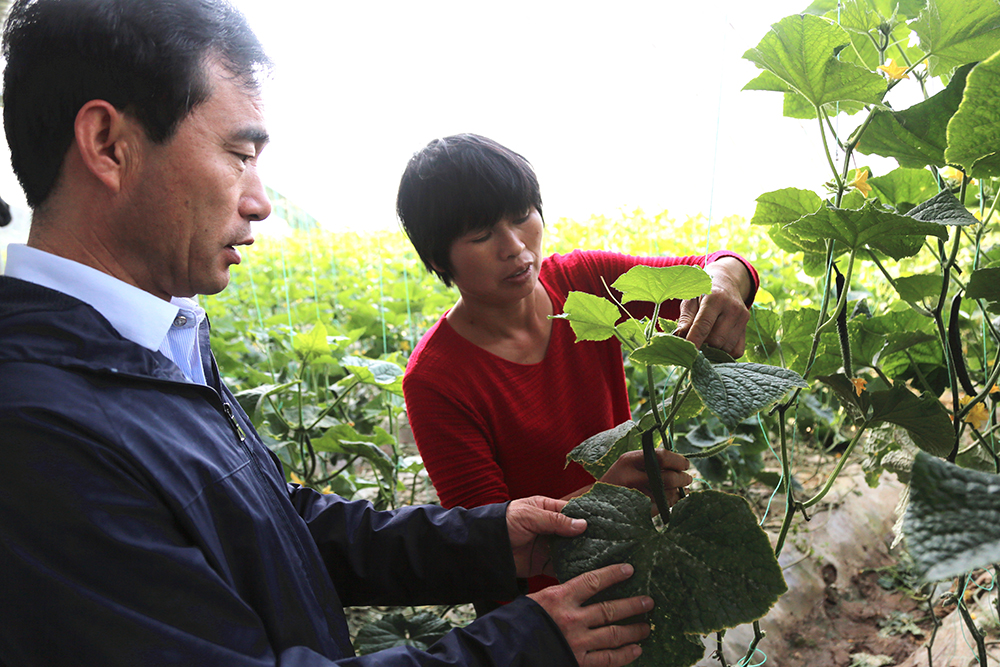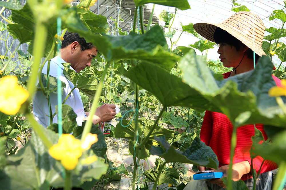 “打藥一定要按時(shí)打按量打,提前打了沒(méi)效果,拖后了就容易產(chǎn)生殘留,”陳德國(guó)仔細(xì)指導(dǎo)著黃瓜種植戶。