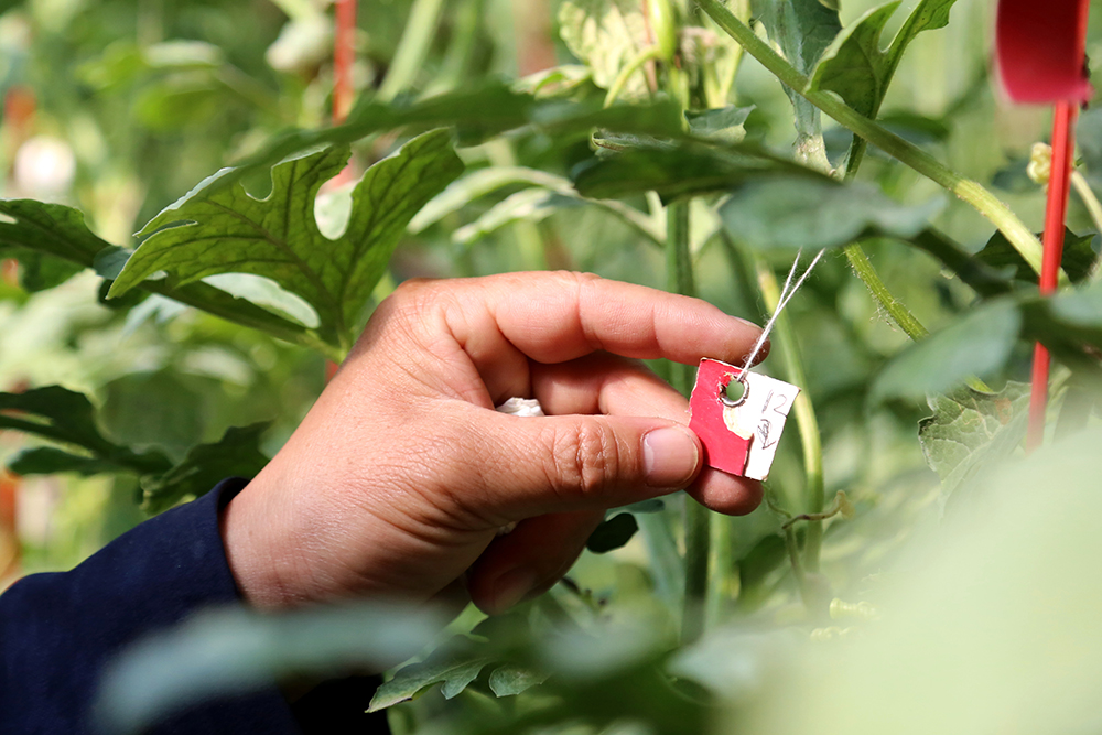 9:15在園區(qū)西瓜種植上,陳德國(guó)沒(méi)有照搬仁風(fēng)西瓜的“彩繩法”,而是自創(chuàng)“標(biāo)簽作法”,即根據(jù)授粉時(shí)間與成熟期給西瓜藤掛上不同號(hào)碼的牌子,根據(jù)生長(zhǎng)周期判斷是否成熟。