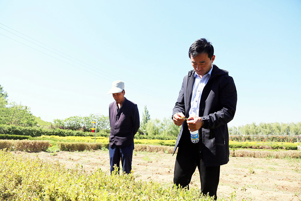 14:00去往連棟溫室的路上,陳德國(guó)碰到了園林區(qū)的一位同事,向他反映了部分苗木的病蟲害問(wèn)題,陳德國(guó)隨即與同事實(shí)地察看了病蟲害情況,制定了應(yīng)對(duì)方案。防患于未然,哪怕碰到一點(diǎn)小問(wèn)題也不大意拖延,這是陳德國(guó)的一貫作風(fēng)。