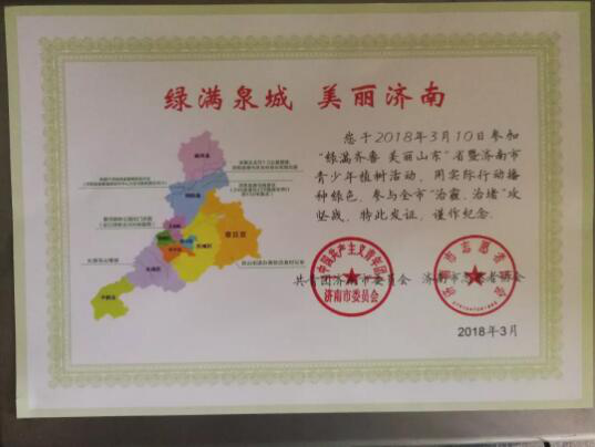 3月10日上午,團(tuán)省委、團(tuán)市委聯(lián)合愛濟(jì)南為助力濟(jì)南新舊動(dòng)能轉(zhuǎn)換先行區(qū)綠色生態(tài)建設(shè),開展2018年“綠滿齊魯,美麗山東”暨濟(jì)南市青少年植樹活動(dòng)。本次活動(dòng)植樹場(chǎng)地位于濟(jì)陽(yáng)縣崔寨鎮(zhèn)邢家渡干渠前街段,方圓約2公里。資產(chǎn)運(yùn)營(yíng)公司積極動(dòng)員,組織公司青年團(tuán)員參與本次活動(dòng)。