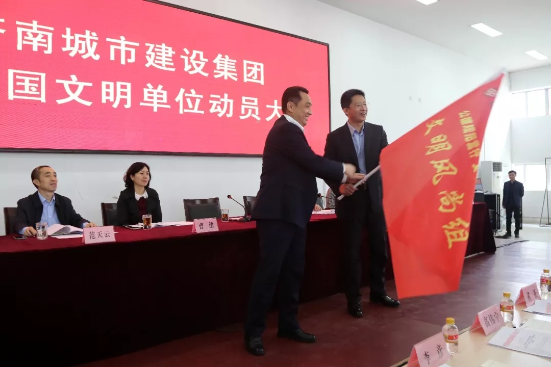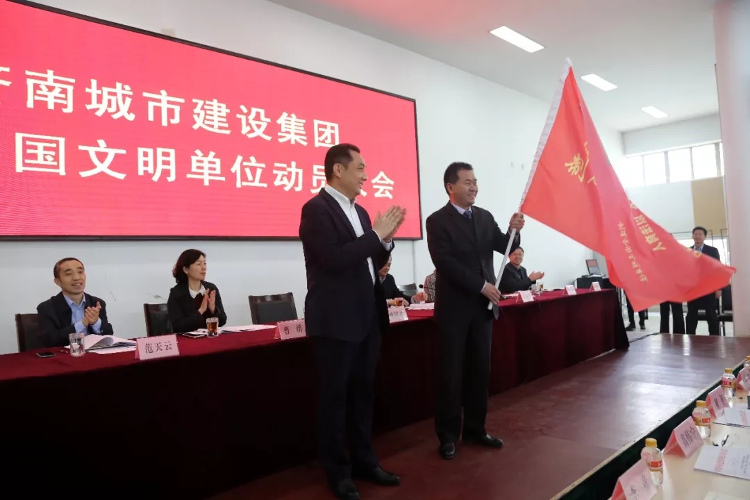 會(huì)上,市文明辦副主任曹湧作指導(dǎo)講話,黨委書(shū)記、董事長(zhǎng)李國(guó)祥作了動(dòng)員講話,集團(tuán)黨委副書(shū)記姜秀杰宣讀了《濟(jì)南城市建設(shè)集團(tuán)創(chuàng)建全國(guó)文明單位工作方案》,兩位部室、子公司代表就下一步工作作了表態(tài)發(fā)言。大會(huì)還對(duì)六個(gè)創(chuàng)建小組進(jìn)行了現(xiàn)場(chǎng)授旗。
