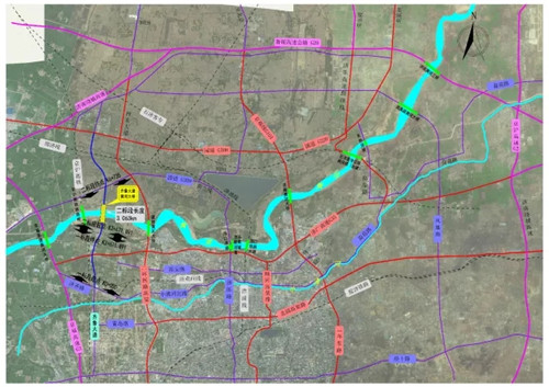 兩座大橋均按照雙向八車道一級公路標準建設(shè),兼顧城市主干路功能,設(shè)計速度60公里/小時,跨黃段橋梁范圍為公軌合建的橋梁形式,中間預(yù)留城市軌道交通空間,滿足城市軌道交通縱斷面相關(guān)技術(shù)條件。
