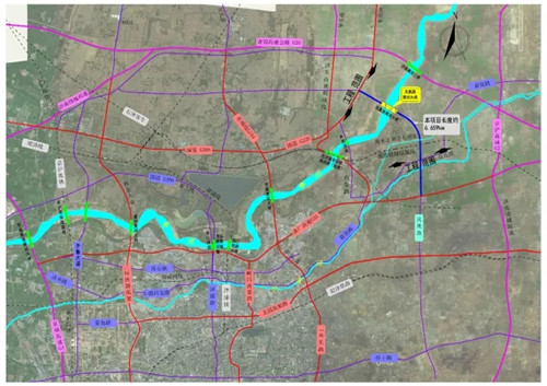 齊魯黃河大橋由濟南城市建設(shè)集團負責建設(shè),項目法人為集團旗下的濟南城魯建設(shè)工程有限公司。項目位于濟南市槐蔭區(qū)、天橋區(qū),路線南起齊魯大道與濟齊路交叉口,接現(xiàn)狀齊魯大道,依次跨越美里路、北太平河北路、濟廣高速,經(jīng)過鄭家店村東,跨越黃河后與現(xiàn)狀G309相交,依次跨越北展大堤和邯濟鐵路線,到達終點裕興路與國道308交叉口。項目全長6735米,其中黃河特大橋長度為3209.2米。