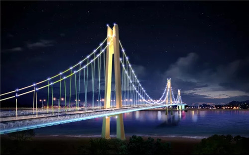 鳳凰黃河大橋的外觀設(shè)計取杜甫《望岳》一詩中“鐘靈毓秀”之意。寰宇茫茫,齊魯泱泱。鐘靈毓秀,源遠流長。自錨式懸索橋具有兼收并蓄、剛?cè)嵯酀臏喓耧L格,索塔體現(xiàn)其陽剛的一面,而流暢的主纜線形則將其柔美展現(xiàn)的淋漓盡致。