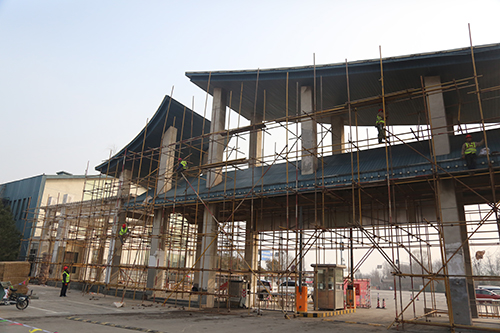 道路廣場及展園維修工程主要以辦公樓、主展館及各展園建筑墻面、地面、防水維修以及園區(qū)道路、廣場維修為主。目前,破損墻皮打磨處理約8000平方米,鋼制結(jié)構(gòu)除銹打磨刷漆約4500平方米。由于展園較分散、維修量大,計劃增加施工人員,加快工程施工進度,確保按期完工。