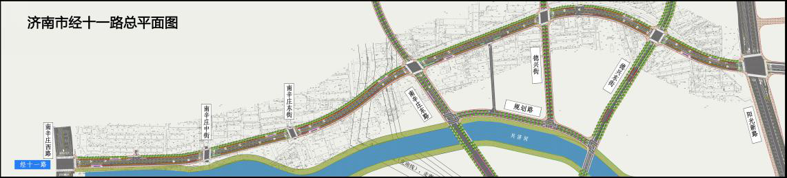 經(jīng)十一路(南辛莊西路-陽(yáng)光新路)建設(shè)工程位于濟(jì)南市槐蔭區(qū),東起陽(yáng)光新路,西至南辛莊西路,道路規(guī)劃紅線寬度為30米,快車道雙向四車道,全長(zhǎng)約1967.99米,投資概算1.39億元。主要建設(shè)內(nèi)容包括新建道路、敷設(shè)雨污水管線,配套實(shí)施給水、燃?xì)狻崃?、弱電、電力等土建工程,同步進(jìn)行道路綠化、路燈、交通設(shè)施等建設(shè)。