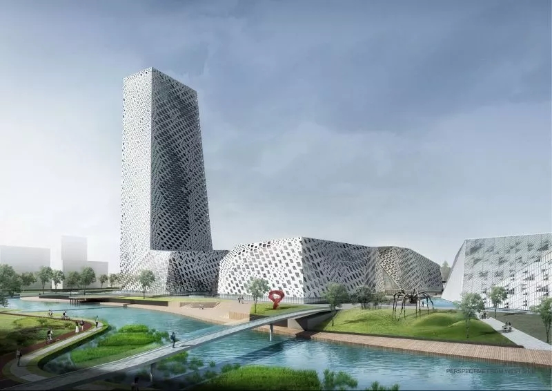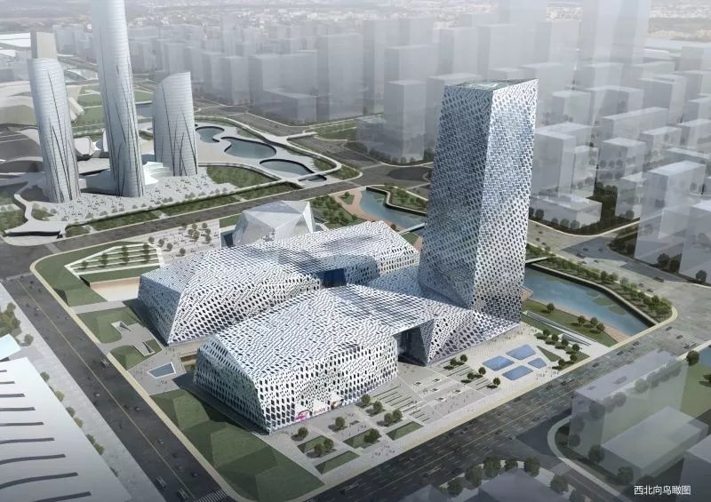 三館二期項(xiàng)目北臨興福寺路,東至臘山河?xùn)|路,西至臘山河西路,南接“一院三館”,北鄰印象濟(jì)南泉世界。項(xiàng)目規(guī)劃總用地范圍4.65公頃,總建筑面積21.5萬㎡,裙房6層,超高層塔樓34層。其中,地上建筑面積約15萬㎡,地下建筑面積約6.5萬㎡,提供700余個車位。
