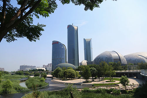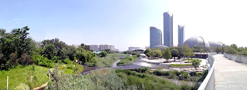 臘山河是濟(jì)南西部的一處重要河流,同時(shí)也是西客站片區(qū)內(nèi)的一條生態(tài)景觀帶,景觀帶在2013年十藝節(jié)期間建成,與“一院三館”相映成趣。