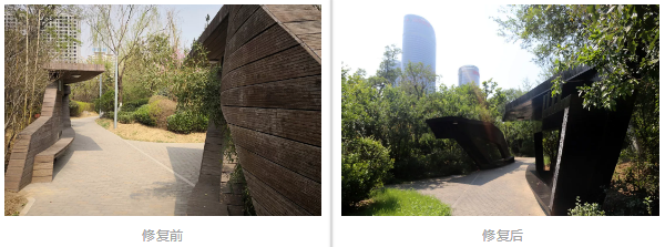 本次工程主要包括高速廣場及三館廣場重竹地板維修、木棧道路修復(fù)、局部河道清淤三項(xiàng)主要內(nèi)容,其余還有修補(bǔ)滲水方磚地面、廣場金屬欄桿刷漆、廣場區(qū)域休息座凳整修、廣場區(qū)域木質(zhì)墻面固定刷漆、跨河石橋欄板地面局部飾面板缺失等零星工程,均為在原貌基礎(chǔ)上進(jìn)行修復(fù)。工程完工后,集團(tuán)下一步將委托專門的維護(hù)單位對臘山河進(jìn)行常規(guī)維護(hù),讓臘山河水常清、岸常綠。