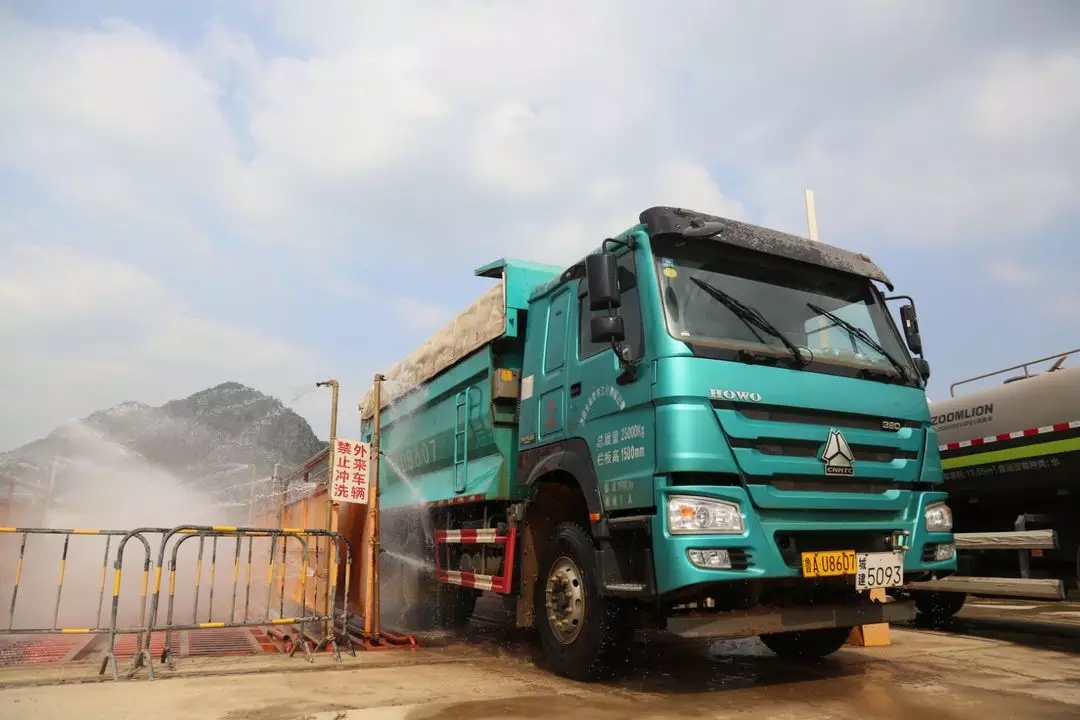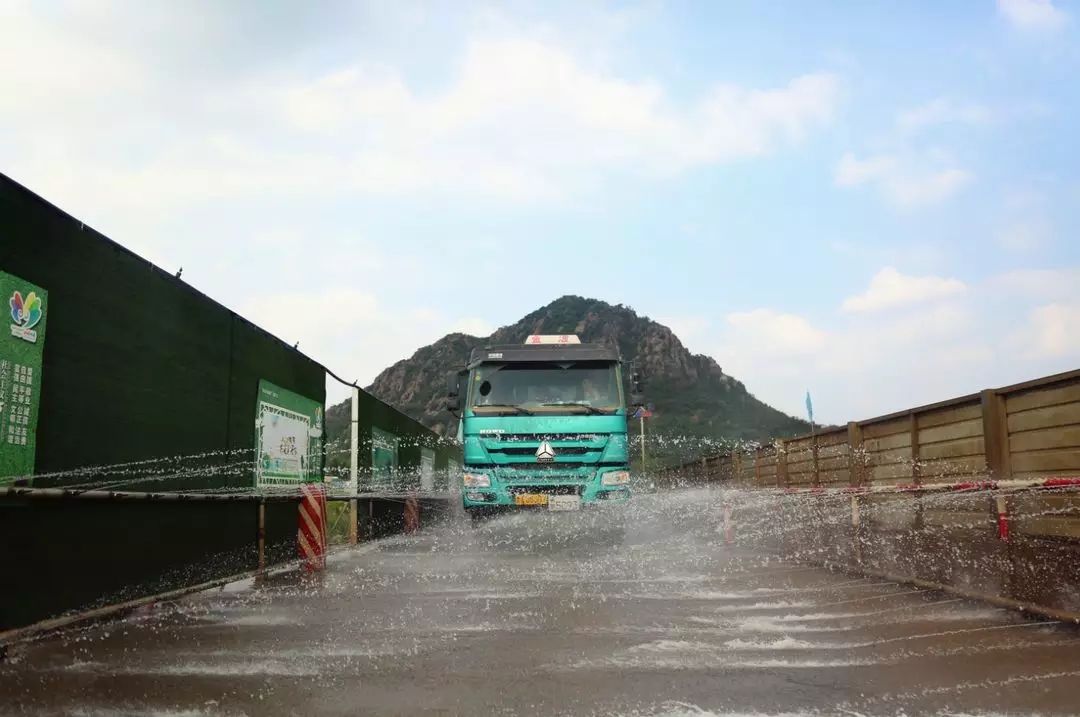 該項(xiàng)目除按照相關(guān)要求安裝自動汽車沖洗平臺、便道兩側(cè)設(shè)置環(huán)場噴淋、出入口安裝24小時(shí)揚(yáng)塵在線監(jiān)測和視頻監(jiān)控設(shè)備外,還組織了各參建單位技術(shù)力量,創(chuàng)新開發(fā)了不停車沖洗設(shè)施作為輔助標(biāo)準(zhǔn)化洗車平臺,以加強(qiáng)沖洗效果。出入口設(shè)置凈車檢查點(diǎn),對沖洗不徹底的部位,采用手持高壓水槍進(jìn)行徹底清洗。目前項(xiàng)目的各出入口均已配置2臺自動汽車沖洗平臺,2臺高壓水槍和不停車沖洗設(shè)施。通過以上措施,實(shí)現(xiàn)施工范圍內(nèi)揚(yáng)塵情況24小時(shí)零死角監(jiān)控,確保外運(yùn)車輛不帶泥上路。