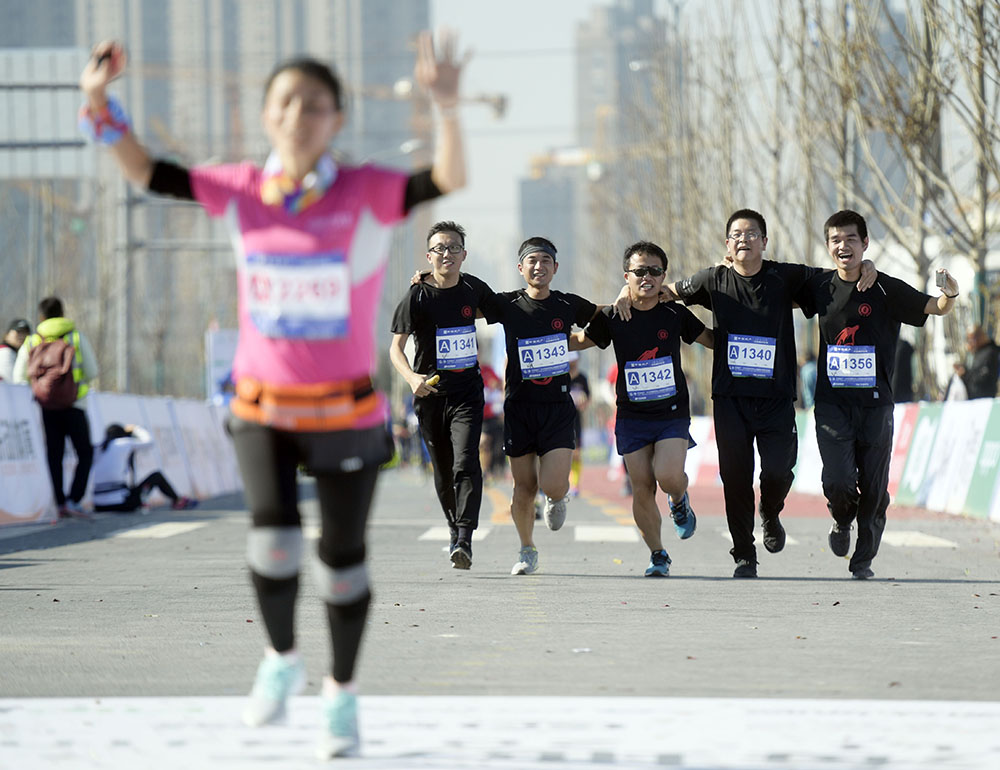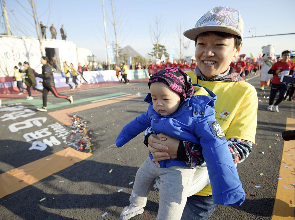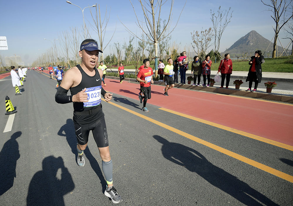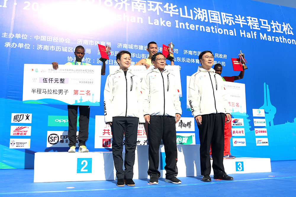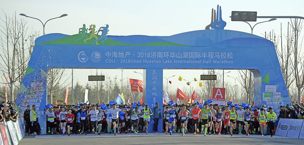 經(jīng)過激烈角逐,男子組前三名分別由棗莊選手李子成和兩名肯尼亞選手獲得,女子組前三名分別由遼寧選手王佳偉和兩名濟南選手獲得。除了半程馬拉松,賽事還設置了迷你馬拉松(5公里)以及家庭親子跑,大家共享了運動的快樂。來自國內(nèi)外的5000余名跑馬愛好者在華山湖畔用腳步丈量華山生態(tài)人文新城,感受“齊煙九點”和“鵲華煙雨”的魅力。