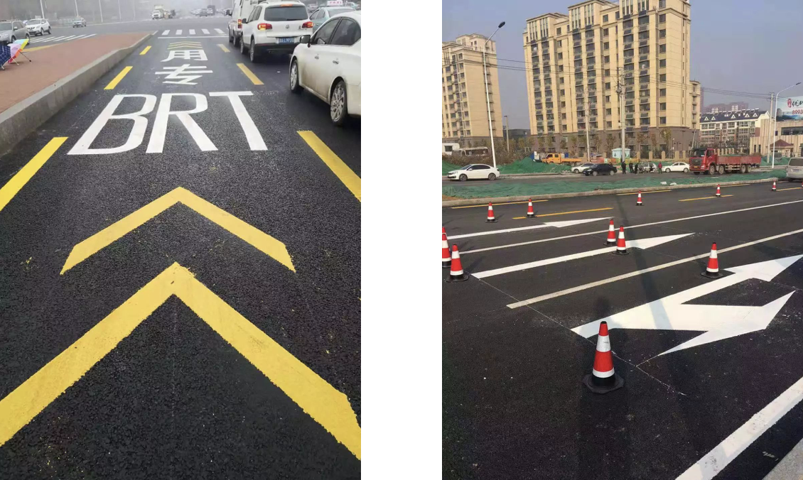 雙組份高亮標(biāo)線涂料的主要原料是 “甲基丙烯酸甲酯”(英文縮寫(xiě)MMA),此次路面標(biāo)線施劃的標(biāo)線涂料全部采用MMA雙組份,具體施工內(nèi)容為MMA雙組份標(biāo)線(刮涂)6100㎡、MMA雙組份標(biāo)線(甩涂)4300㎡、MMA雙組份標(biāo)線(噴涂)2200㎡。