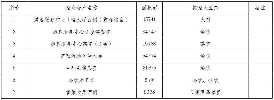 以上可經(jīng)營(yíng)性資產(chǎn)擬招商業(yè)態(tài)可適當(dāng)調(diào)整,最終解釋權(quán)歸山東濟(jì)西濕地管理有限公司,詳情咨詢園區(qū)運(yùn)營(yíng)工作組。