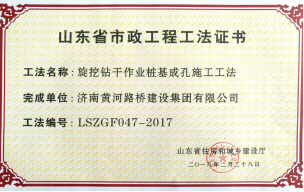 2018年2月28日,濟(jì)南黃河路橋建設(shè)集團(tuán)公司申報(bào)的6項(xiàng)工法全部被山東省住房和城鄉(xiāng)建設(shè)廳批準(zhǔn)為山東省市政工程工法。