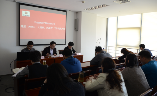 2018年4月9日,濟(jì)南西城資產(chǎn)管理有限公司組織召開“大學(xué)習(xí)、大調(diào)研、大改進(jìn)”工作動(dòng)員大會(huì)。會(huì)議由資產(chǎn)公司副總經(jīng)理?xiàng)罾ね局鞒植⑿x《濟(jì)南西城資產(chǎn)管理有限公司開展“大學(xué)習(xí)、大調(diào)研、大改進(jìn)”工作實(shí)施方案》,副總經(jīng)理陳向勤同志宣讀《濟(jì)南城市建設(shè)集團(tuán)創(chuàng)建全國文明單位工作方案》,董事長兼總經(jīng)理顏丙根同志就以上工作作動(dòng)員講話。