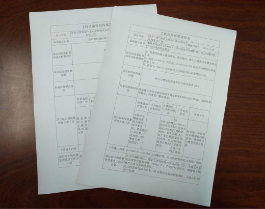 項目部接收質(zhì)量管理交底,并承諾貫徹執(zhí)行?,F(xiàn)各項目已按交底要求開展相關(guān)工作,并開始上報質(zhì)量管理工作周報等報表,公司可及時掌握各項目質(zhì)量管理動態(tài),有針對性的調(diào)度各項目部質(zhì)量管理工作,有效提高了公司質(zhì)量管理監(jiān)管的力度。