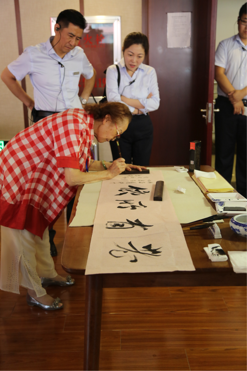 包好了粽子,孫忠華即興為養(yǎng)老服務(wù)中心題字一幅,她說:“你們這個地方讓我感覺溫暖,大家親得就像一家人,所以啊,我就寫老有所依!”