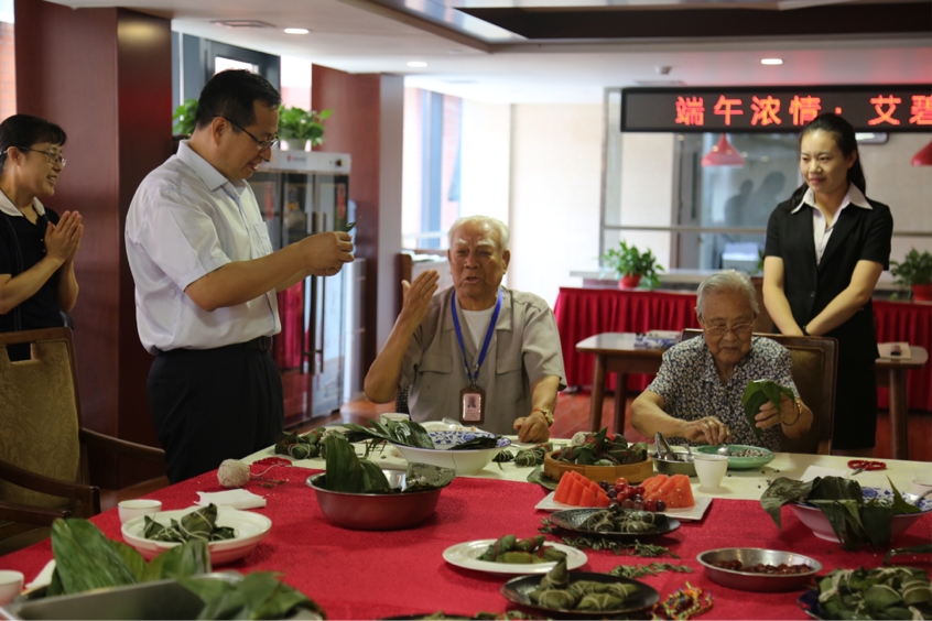 五月五,是端陽。門插艾,香滿堂;吃粽子,灑白糖;龍舟下水喜洋洋。6月18日,山東濟南養(yǎng)老服務(wù)中心的老人們迎來了入住以來的第一個端午節(jié),服務(wù)人員們也忙得不亦樂乎。