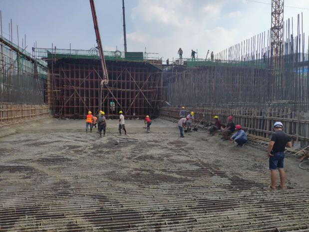 根據(jù)市委、市政府工作部署,車腳山隧道南洞口與二環(huán)南東延快速路匝道連接段納入鳳凰路工程,采用箱涵加地面道路組合形式,長約720米。工期緊、難度大,在各參建單位的大力支持與配合下,不斷攻克難關(guān),工程順利有序開展,現(xiàn)階段東線箱涵底板施工60余米,西線箱涵底板施工30余米。