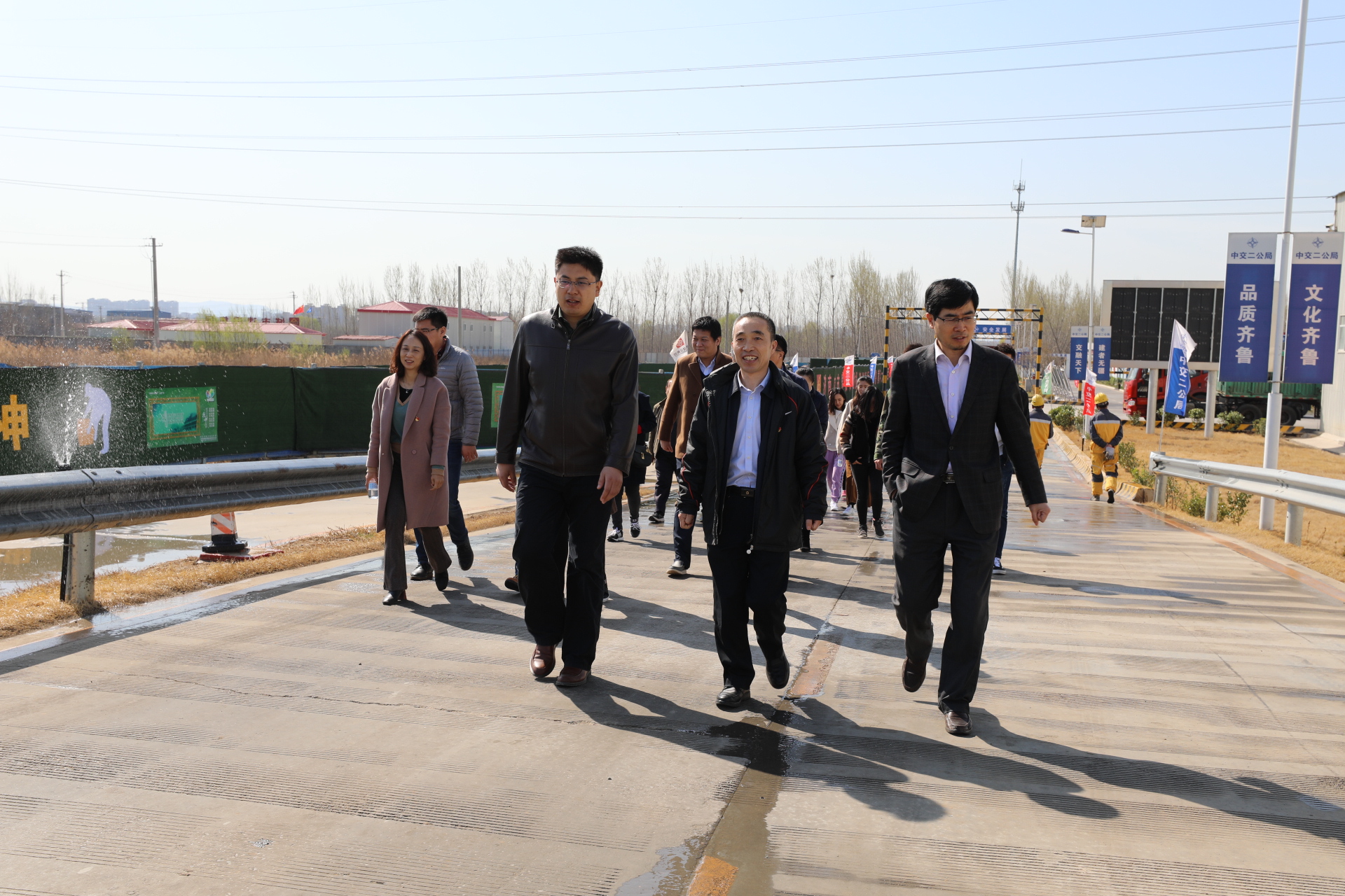 全體人員在集團(tuán)總會(huì)計(jì)師范天云的帶領(lǐng)下,首先來到齊魯大道北延工程項(xiàng)目經(jīng)理部,與公司副總經(jīng)理趙世超及工作人員進(jìn)行了座談,雙方首先介紹了各自支部情況及組織建設(shè)情況并進(jìn)行了交流。隨后,項(xiàng)目負(fù)責(zé)人對(duì)工程進(jìn)行了詳細(xì)的介紹,并參觀了齊魯黃河大橋橋梁模型、觀看了黃河大橋建設(shè)宣傳片,展示了齊魯黃河大橋的建設(shè)過程及原理。作為目前同類橋型跨徑世界第一網(wǎng)狀吊桿系桿拱橋,其所展現(xiàn)的創(chuàng)新技術(shù)、建成效果以及打造的“黃河橋梁文化”令人驚嘆和期待。