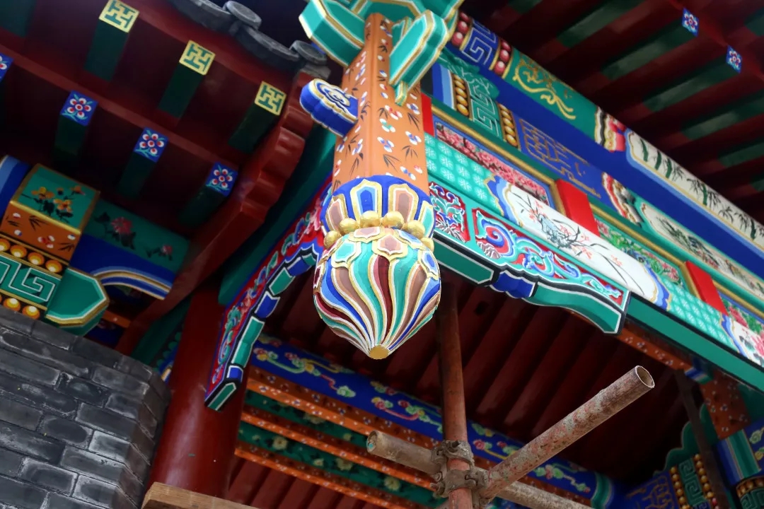 老濟(jì)南街項(xiàng)目中的建筑物彩繪為清代的官式彩繪,集中裝飾于占地面積最大、院落層次最復(fù)雜的“親王府”區(qū)域,彩繪具有形象生動(dòng)、內(nèi)容豐富的特點(diǎn),兼具可觀性與實(shí)用性,不僅延長(zhǎng)建筑物的壽命還可以狀物抒情。此次“親王府”的建筑彩繪工作,由省內(nèi)資質(zhì)高、經(jīng)驗(yàn)豐富的曲阜市園林古建筑工程有限公司具體負(fù)責(zé),本著嚴(yán)謹(jǐn)負(fù)責(zé)的工作態(tài)度,遵循建筑清代背景元素,按照建筑物的格局與不同等級(jí)制度,組織繪畫(huà)經(jīng)驗(yàn)豐富的工匠制作。
