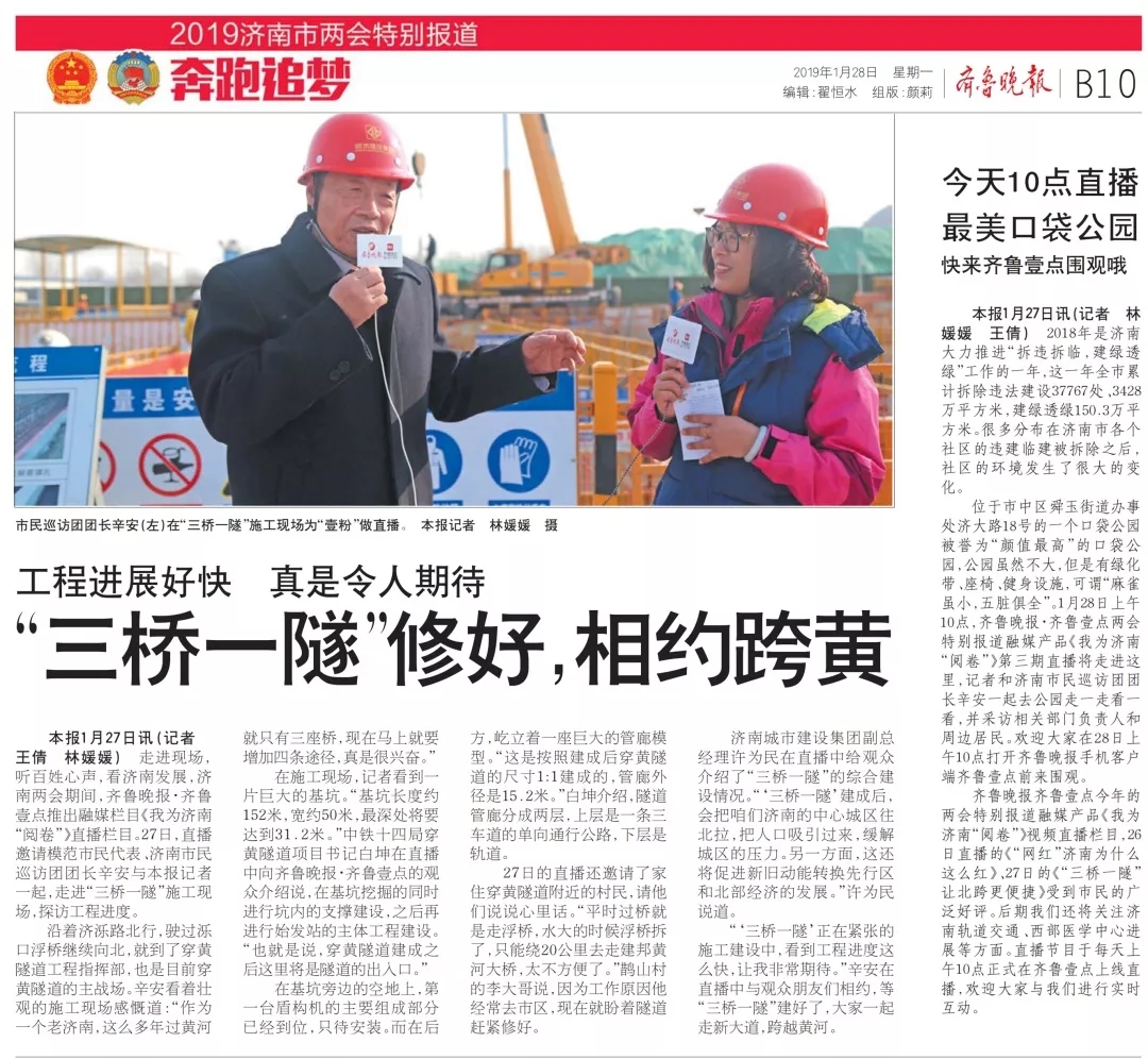 走進現場,聽百姓心聲,看濟南發(fā)展,濟南兩會期間,齊魯晚報·齊魯壹點推出融媒欄目《我為濟南“閱卷”》直播欄目。1月27日,模范市民代表、濟南市民巡訪團團長辛安與齊魯晚報記者一起,走進濟南黃河隧道施工現場,探訪“三橋一隧”工程進度。