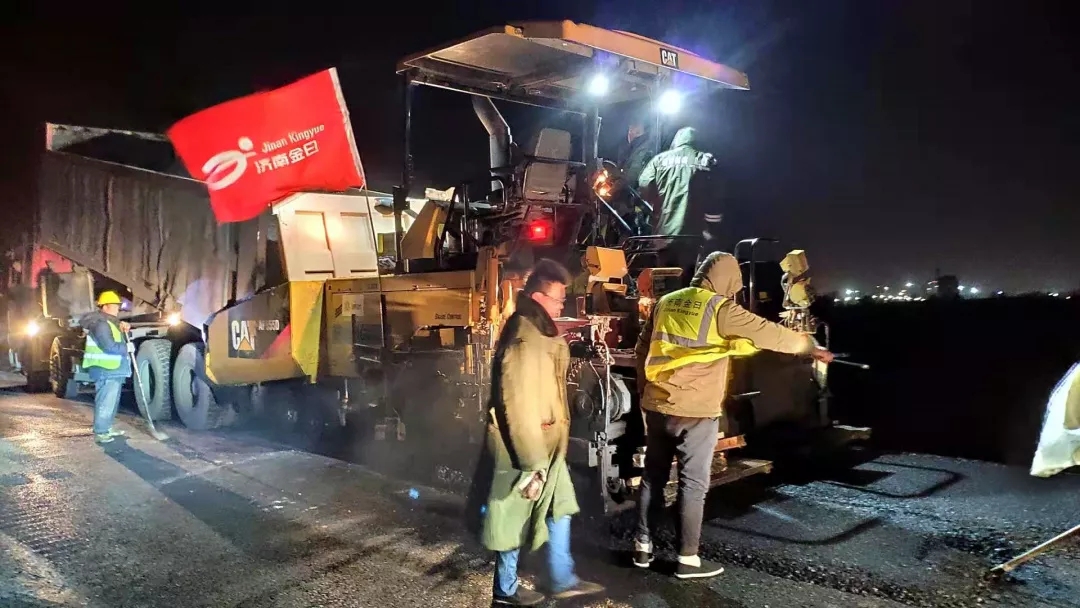 為確保項(xiàng)目建設(shè)進(jìn)度,尤其是在寒潮低溫前確保水穩(wěn)基層、瀝青面層節(jié)點(diǎn)工期,項(xiàng)目部技術(shù)人員奮戰(zhàn)在施工一線,晝夜趕工,掀起持續(xù)大干72小時(shí)施工熱潮。項(xiàng)目部合理規(guī)劃,根據(jù)情況及時(shí)調(diào)整施工方案,加大人力、物力投入,兩個(gè)水穩(wěn)基層、兩個(gè)瀝青面層作業(yè)面同時(shí)進(jìn)行施工。夜間施工中,一線建設(shè)者“挑燈夜戰(zhàn)”,攤鋪機(jī)、壓路機(jī)、裝載機(jī)等各種機(jī)械配合施工,形成了一條有序的機(jī)械操作流水線。同時(shí),施工完成后,項(xiàng)目部進(jìn)行自檢、監(jiān)理檢測(cè)和業(yè)主抽檢,平整度、壓實(shí)度、厚度等各項(xiàng)指標(biāo)全部合格,為項(xiàng)目后續(xù)路面施工奠定了扎實(shí)的基礎(chǔ)。