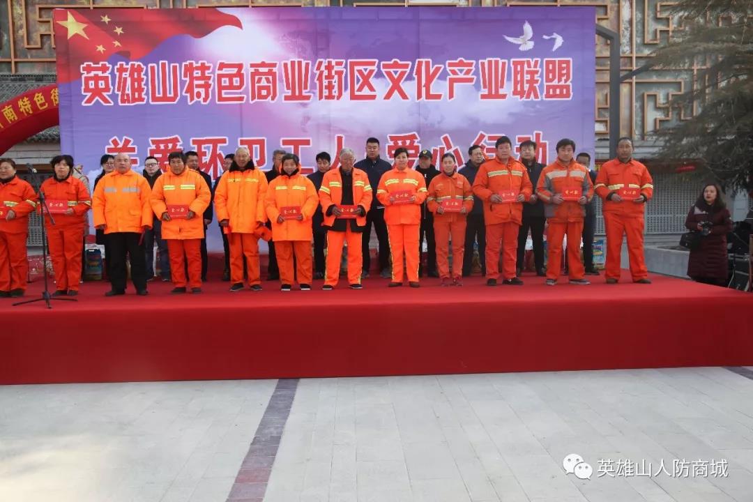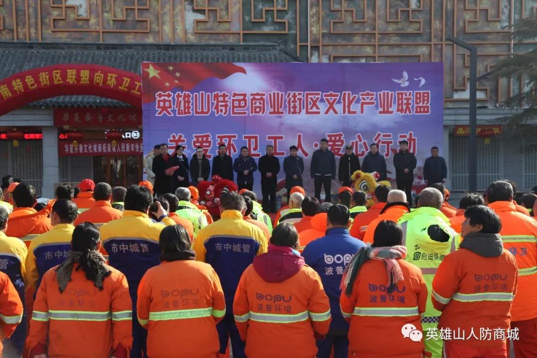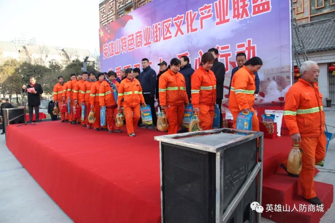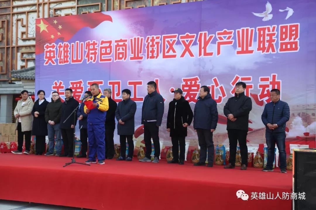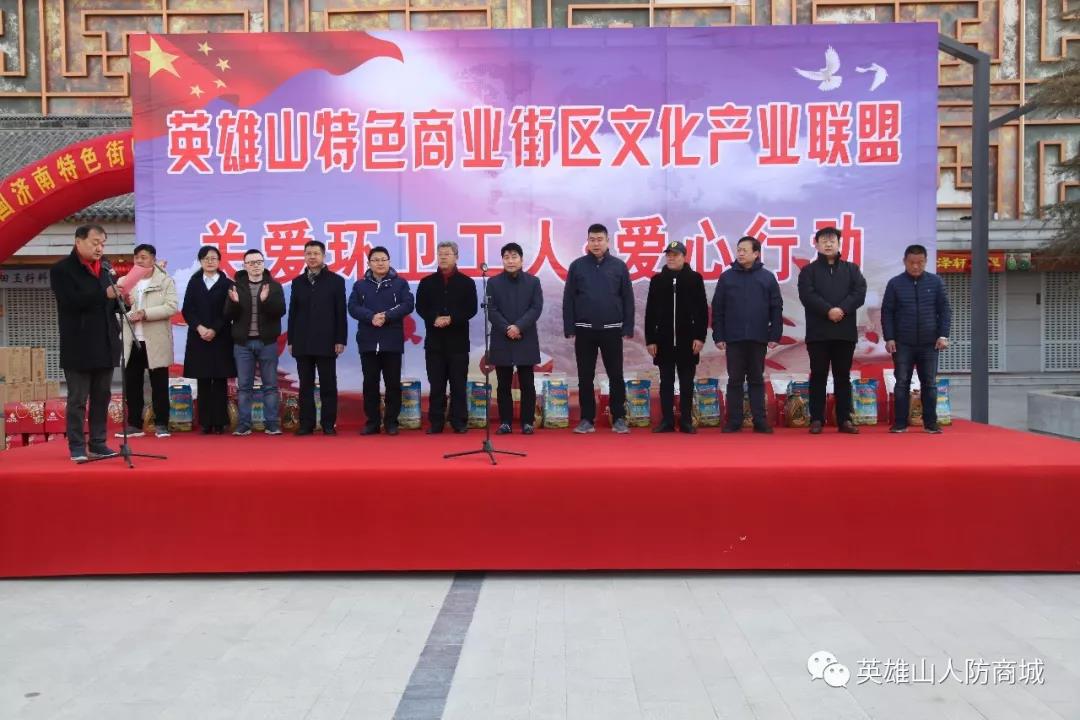 2019年2月1日,農(nóng)歷臘月二十七,濟南市英雄山人防工程管理有限責任公司作為英雄山特色商業(yè)街區(qū)文化產(chǎn)業(yè)聯(lián)盟成員單位,與多家聯(lián)盟單位聯(lián)合發(fā)起了中國濟南特色街區(qū)聯(lián)盟“關愛環(huán)衛(wèi)工人,愛心行動”主題公益活動,為服務于街區(qū)的環(huán)衛(wèi)工人們獻上節(jié)日的祝福,并送上了個人捐款與農(nóng)副產(chǎn)品。市中區(qū)副區(qū)長潘建軍、四里村街道辦事主任崔珉受邀參加了本次活動。