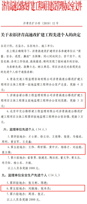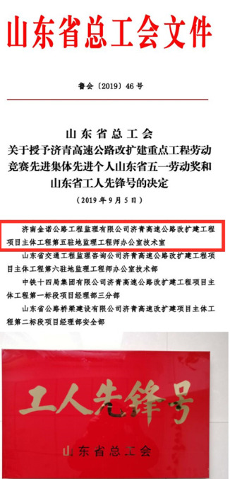 近日,由濟南城市建設(shè)集團所屬濟南金諾公路工程監(jiān)理有限公司承建的濟青高速第五駐地辦榮獲2019年山東省總工會“工人先鋒號”榮譽稱號, 同時,在2019年度該項目“決戰(zhàn)100天,確保按時交工通車”勞動競賽活動中表現(xiàn)突出,榮獲2019年濟青高速改擴建工程“優(yōu)秀監(jiān)理單位”、“安全杯”獲獎單位榮譽稱號;其中,項目負責(zé)人獲得“優(yōu)秀駐地監(jiān)理工程師”稱號, 6位同志獲得“監(jiān)理單位先進個人”稱號, 2位同志獲得“監(jiān)理單位安全生產(chǎn)先進個人” 稱號,共獲得專項獎勵49.6萬元。