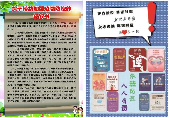街道社區(qū)和集團(tuán)印發(fā)了《新冠肺炎防控知識(shí)手冊(cè)》、《關(guān)于持續(xù)加強(qiáng)疫情防控的倡議書》等宣傳手冊(cè)、宣傳頁,對(duì)新型冠狀病毒感染的肺炎的相關(guān)知識(shí)進(jìn)行了答疑解惑。目前我國疫情防控形勢(shì)持續(xù)好轉(zhuǎn),但疫情尚未解除,現(xiàn)階段境外輸入日益加劇,疫情防控不容麻痹松懈,提醒居民出入務(wù)必佩戴好口罩,做好個(gè)人防護(hù),如有省外返濟(jì)或境外旅居史的要及時(shí)上報(bào)。