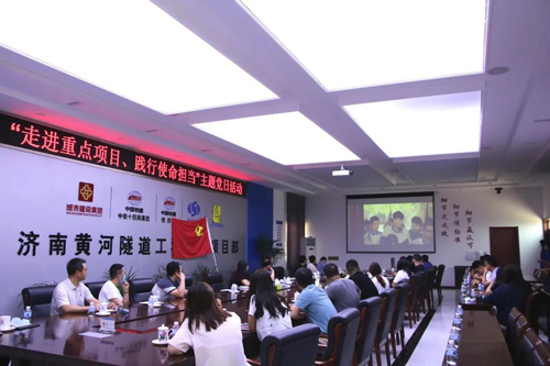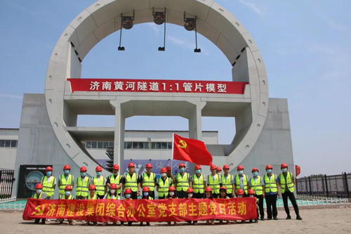 在濟(jì)南黃河隧道,支部成員參觀了濟(jì)南黃河隧道智慧工程指揮中心及大盾構(gòu)施工現(xiàn)場(chǎng),了解了黃河隧道設(shè)計(jì)原理和掘進(jìn)技術(shù),感受了現(xiàn)代化、信息化、智能化建設(shè)現(xiàn)場(chǎng)的魅力和震撼。