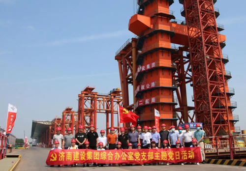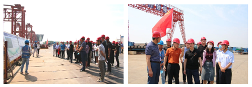 在鳳凰黃河大橋,項(xiàng)目負(fù)責(zé)人對(duì)鋼塔、鋼箱梁頂推和跨堤引橋施工以及安全、質(zhì)量、進(jìn)度、環(huán)保和疫情防控等情況進(jìn)行了介紹,支部成員進(jìn)行了現(xiàn)場(chǎng)參觀。