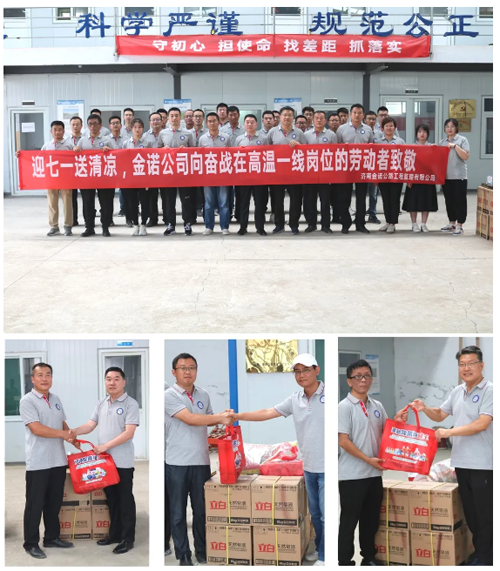 炎炎夏日,氣溫持續(xù)攀升,工地現(xiàn)場更是酷熱難當(dāng)。公司心系一線員工,堅持以人為本的發(fā)展理念,開展了“夏送清涼”活動,金諾公司領(lǐng)導(dǎo)班子深入一線,為工作在一線的職工發(fā)放洗衣液、沐浴露、洗發(fā)露、牙膏牙刷、毛巾等勞保用品以及綠豆等防暑用品,把清涼送到一線,把關(guān)懷送到職工心坎,給全體職工帶來問候,讓大家感受到公司濃濃關(guān)懷和夏日里的清涼。