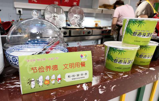 市場管理部協調各餐飲點,主動引導顧客“吃多少點多少,吃剩請打包,千萬避免浪費”,對“光盤”或“打包”顧客贈送小禮品,以增強廣大顧客的“勤儉節(jié)約”意識。