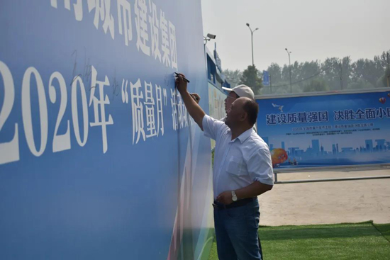 儀式結(jié)束后,參加活動全體人員在“質(zhì)量月”活動動員大會背景板簽名。
