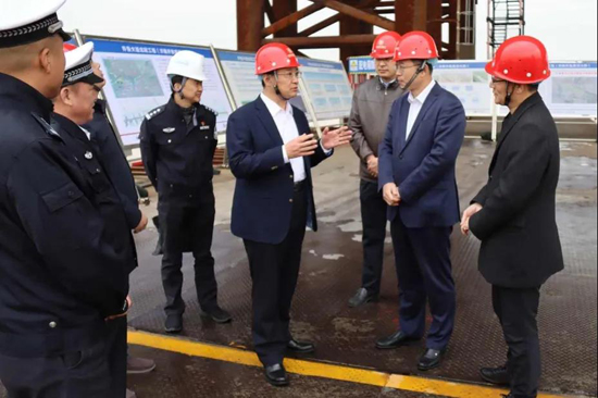在主橋施工現(xiàn)場(chǎng),工作組認(rèn)真聽取了齊魯黃河大橋工程建設(shè)等有關(guān)情況的匯報(bào),并詳細(xì)了解了主橋梁板架設(shè)、施工中存在的問題難題和建設(shè)工期安排。曹鳳陽(yáng)表示,此次“萬(wàn)警進(jìn)萬(wàn)企”活動(dòng)緊緊圍繞市委政法委部署要求,堅(jiān)持“主動(dòng)聯(lián)系企業(yè)、主動(dòng)服務(wù)企業(yè)、主動(dòng)保護(hù)企業(yè)”原則,及時(shí)了解企業(yè)需求,響應(yīng)企業(yè)訴求,努力為企業(yè)辦實(shí)事、做好事、解難事,建立常態(tài)化聯(lián)系溝通機(jī)制,助力企業(yè)健康發(fā)展、高質(zhì)量發(fā)展。他指出,齊魯黃河大橋的順利建成將極大推動(dòng)槐蔭和齊河兩地旅游業(yè)和經(jīng)濟(jì)社會(huì)互動(dòng)發(fā)展,為建設(shè)“大強(qiáng)美富通”現(xiàn)代化國(guó)際大都市作出新的更大貢獻(xiàn)。
