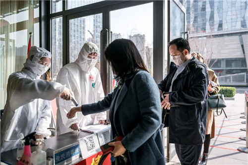 時間倒回至2月25日,蒙蒙細(xì)雨中,6位要參會的同志被“攔”在大廈門口,經(jīng)過防疫人員的“盤查”和測體溫等多個程序才得以進(jìn)入大廈。然而差點被拒之門外的他們不僅沒有怨言,反而盛贊“六親不認(rèn)”的一線防疫人員和資產(chǎn)公司嚴(yán)格的防控舉措。