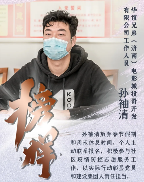新型冠狀病毒肺炎疫情發(fā)生以來(lái),濟(jì)南城市建設(shè)集團(tuán)認(rèn)真貫徹落實(shí)中央、省、市關(guān)于疫情防控和復(fù)工復(fù)產(chǎn)的決策部署,上下一心、眾志成城,全體干部職工恪盡職守、扎根一線,全員全力投入到疫情防控阻擊戰(zhàn)中。期間,涌現(xiàn)出了眾多先進(jìn)典型和感人故事,用實(shí)際行動(dòng)詮釋了建設(shè)集團(tuán)人的精神風(fēng)貌和責(zé)任擔(dān)當(dāng)。我們?cè)诩瘓F(tuán)宣傳平臺(tái)《榜樣》欄目,推出系列人物報(bào)道,挖掘宣傳一線典型,提振士氣、凝聚力量,激勵(lì)我們繼續(xù)前行,堅(jiān)決打贏疫情防控的人民戰(zhàn)爭(zhēng)、總體戰(zhàn)、阻擊戰(zhàn)。