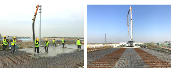 該標段全線10kV以上高壓線共計15條影響主線2400米施工,項目部多措并舉順利攻克難關,大力推進施工進展。自項目開工以來,北岸引橋4#墩一直受上空高壓電纜制約施工,項目部多次勘探現(xiàn)場,編制專項施工方案。樁基鉆孔采用循環(huán)鉆開挖,為避免觸電危險的發(fā)生,設備上方鋪蓋絕緣板后施工;扣除吊裝高度,樁基鋼筋籠全部采用2米一段,于鉆孔內進行連接拼裝;線改后為了迅速形成強度,4#墩下部結構混凝土強度標號提升至C40。