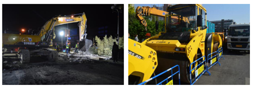 現(xiàn)場(chǎng)共有銑挖機(jī)、銑刨機(jī)、各型挖掘機(jī)、200t起重機(jī)、壓路機(jī)等119臺(tái)機(jī)械及備用機(jī)具。