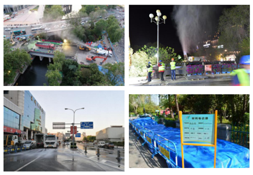 現(xiàn)場(chǎng)通過(guò)抑塵車(chē)霧炮、灑水車(chē)、清掃車(chē)連續(xù)作業(yè),物料嚴(yán)密覆蓋,最大程度抑制揚(yáng)塵。