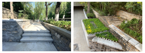 擋墻和步道充分利用原有石材,最大限度的進(jìn)行原狀恢復(fù)。