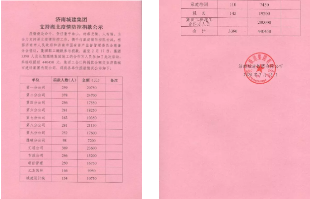 一方有難,八方支援。城建集團(tuán)采取網(wǎng)絡(luò)捐款的形式有序組織活動(dòng),減少人員聚集,廣大黨員干部職工第一時(shí)間響應(yīng)活動(dòng)號(hào)召,紛紛伸出援助之手,一筆筆“愛心捐款”迅速匯集到集團(tuán)捐款專用賬戶,最終共有3390人參加捐款活動(dòng),捐款總額為440450元。全體干部職工紛紛表示:城建人從不怕打硬仗,抗擊疫情,責(zé)無旁貸,堅(jiān)決打贏疫情防控阻擊戰(zhàn)。跟隨城建集團(tuán)南征北戰(zhàn)的配屬隊(duì)伍,長(zhǎng)期受優(yōu)秀企業(yè)文化的熏陶,早已融入我們這個(gè)“城建大家庭”,當(dāng)聞知集團(tuán)開展愛心捐款活動(dòng)后,主動(dòng)請(qǐng)求參加捐款活動(dòng),緊跟集團(tuán)積極履行社會(huì)責(zé)任。