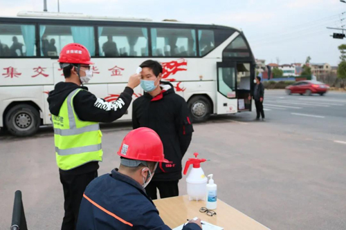 為緩解當前復工用工緊張局面,確保工人安心返崗,濟南城建集團第二分公司金華項目部決定采用包車接工人返金華。通過“點對點一站式直達”方式跨省包車,保障新進員工安全到崗,所有務工人員出示身份證明、健康登記證明和返崗通知,并按照一人一排一座的間距要求就座。同時,項目部接待、住宿、消殺等準備工作已按部就班、有條不紊的進行,2月25日,第一批四川省廣安市鄰水縣的20位工友,乘坐由四川省廣安市鄰水縣出發(fā)的大巴抵達金義東市域軌道交通項目土建11標項目部。