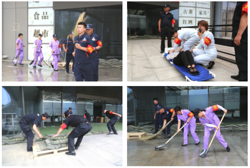 6月9日上午9點(diǎn),防汛應(yīng)急演練活動(dòng)正式開(kāi)始,本次演練模擬暴雨極端天氣背景下,物業(yè)單位發(fā)現(xiàn)汛情后立即啟動(dòng)防汛應(yīng)急預(yù)案,采取筑沙袋墻、快速處置積水、轉(zhuǎn)移商品至安全處、救護(hù)傷員等一系列防汛搶險(xiǎn)措施。整個(gè)演練過(guò)程組織有序、響應(yīng)快速、配合默契,妥善的處置了河水倒灌及水患。